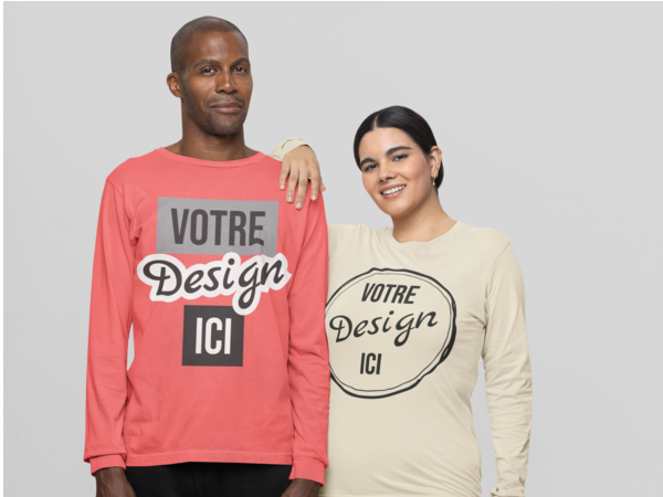 Soyez vous-même créateur de mode et mettez-vous au travail avec notre outil de conception en ligne. Commandez un T-shirt à manches longues personnalisé pour femmes pour les week-ends entre amies, un anniversaire ou un enterrement de vie de jeune fille. Vous cherchez quelque chose pour une sortie d'entreprise ou une fête de famille ? Le modèle à manches longues est un bon choix pour tous. Jetez un coup d'œil à nos T-shirts à manches longues pour hommes. Téléchargez une photo amusante, écrivez un beau texte ou choisissez parmi nos différents motifs. Et tout cela pour seulement 12,90 €. Une bonne affaire !